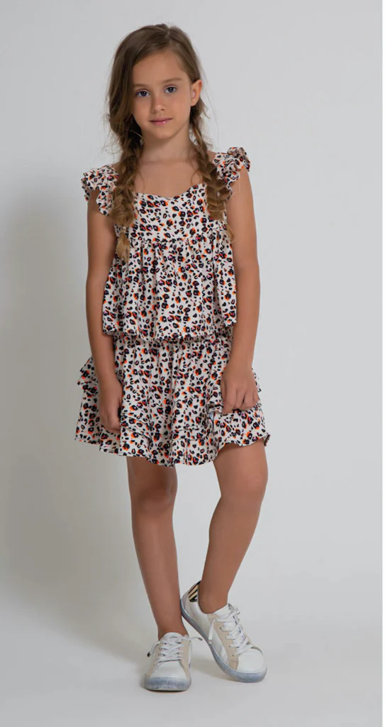 Top Bambina Vicolo Girl fantasia animalier senza maniche con volantini sulle spalle , scollatura quadrato davanti e dietro, balza in vita . Composizione 100% poliestere. . Taglie disponibili 6 ANNI ( ALTEZZA CM 116 – BUSTO 58 -FIANCHI 53 – BACINO 60 ), 8 ANNI ( ALTEZZA CM 128 – BUSTO 61 – FIANCHI 56 – BACINO 65 ), 10 ANNI ( ALTEZZA CM 140 – BUSTO 65,5 – FIANCHI 59 – BACINO 70 ), 12 ANNI ( ALTEZZA CM 152 – BUSTO 72 – FIANCHI 63 – BACINO 79 ), 14 ANNI ( ALTEZZA CM 164 – BUSTO 78,5 – FIANCHI 67 – BACINO 87 ).