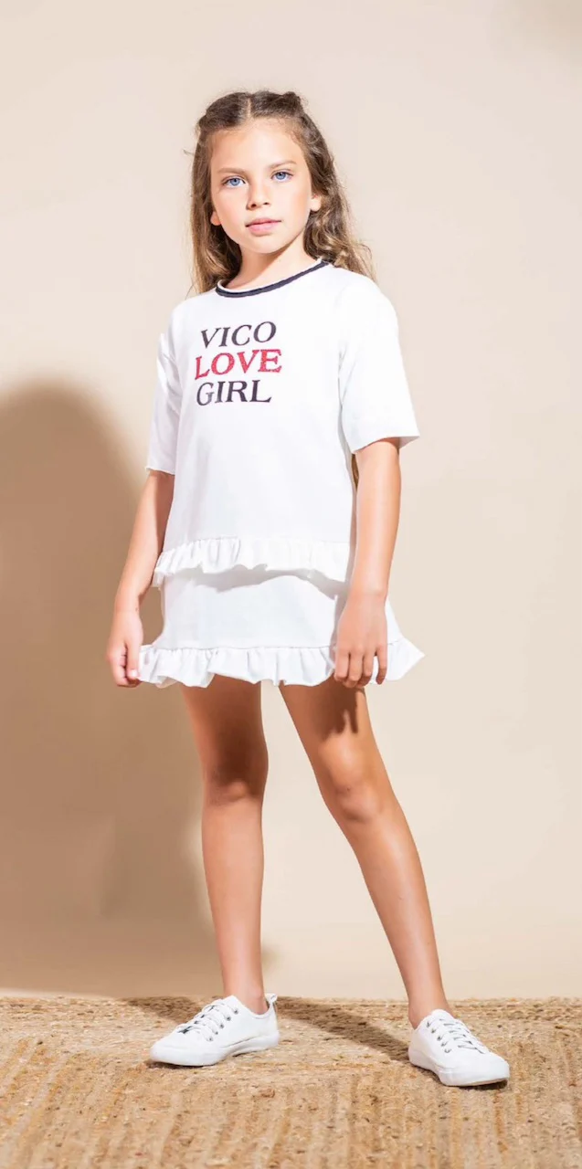 Vestito Bambina Vicolo in felpa “Vico Love Girl ” con rouches Anni 2,10